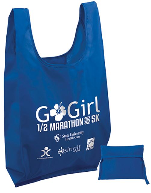 190 denier polyester t-shirt style bag that folds into a 6″ x 51⁄2″ interior pocket.