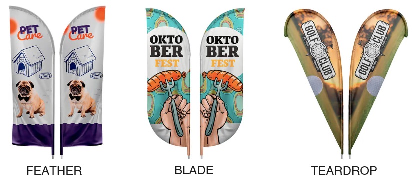 Advertising flags are a great way to grab people’s attention and gain new potential customers. They work well because they can include your company’s logo or other event information and they wave with a slight breeze to grab people’s attention. Rapp’s has three varieties to select from, Feather, Blade and Teardrop. You may have noticed that these flags are gaining in popularity, and businesses are starting to use them more because they work well.