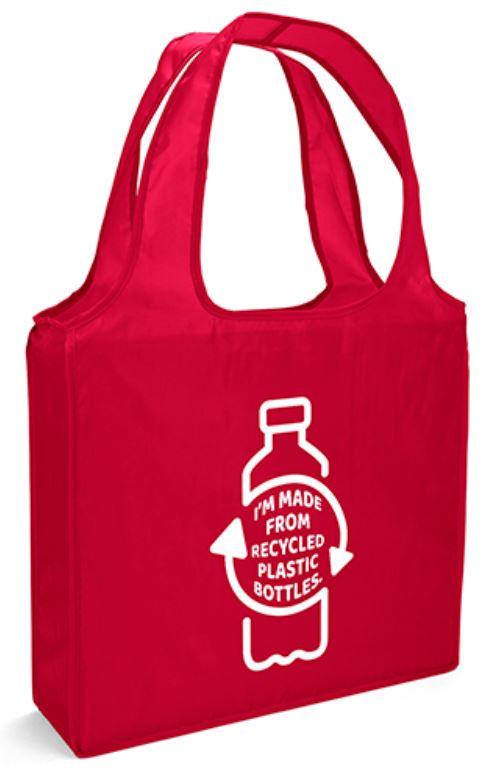Our reusable polyester T-shirt Bags are a strong 190 denier polyester tote bag with a sewn in interior pocket, and it folds into itself! Affordable, lightweight, and versatile, our polyester back packs are a great choice for retail, groceries, tradeshows, giveaways and more!